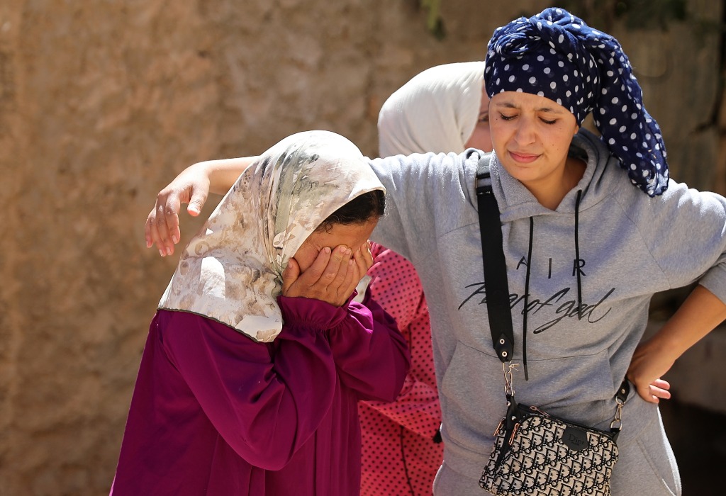 9月10日,在摩洛哥震中附近的艾米兹米兹村,一名女子掩面哭泣。新华社记者王东震摄