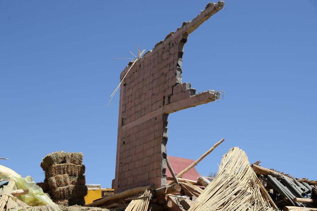 这是9月10日在摩洛哥震中附近的艾米兹米兹村拍摄的损毁建筑。新华社记者 王东震 摄
