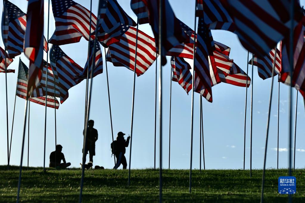 9月10日,人们参观美国加利福尼亚州马利布佩珀代恩大学草坪上的“旗海”。
