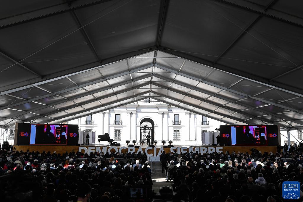 9月11日,在智利首都圣地亚哥,总统府前广场上举行活动悼念50年前军事政变受害者。新华社发(豪尔赫·比列加斯摄)