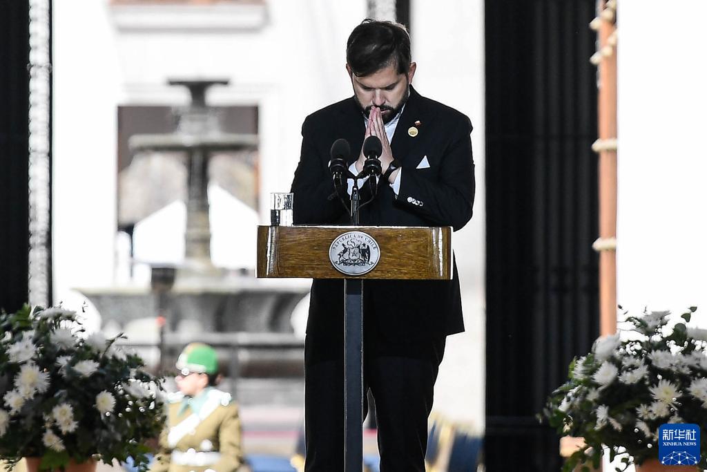 9月11日,在智利首都圣地亚哥,智利总统博里奇出席悼念活动。新华社发(豪尔赫·比列加斯摄)
