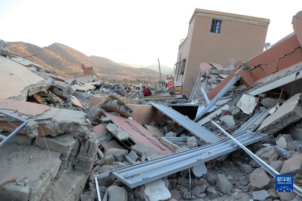 9月12日,在震中区域的摩洛哥豪兹省塔拉特恩雅库布村,记者拍摄到大量被地震损毁建筑。