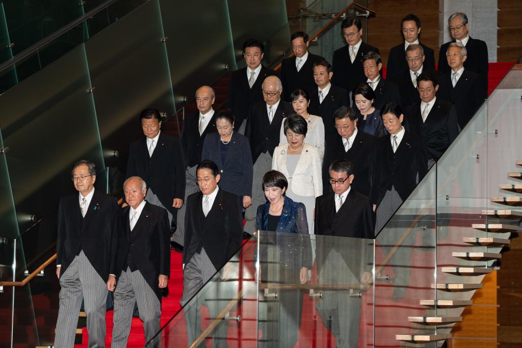 根据最新公布的新内阁成员名单,包括外务大臣、防卫大臣在内的13名内阁成员更换,内阁官房长官松野博一、财务大臣铃木俊一、经济产业大臣西村康稔、经济安全保障担当大臣高市早苗、数字大臣河野太郎以及来自公明党的国土交通大臣齐藤铁夫等6名内阁成员继续留任。防卫大臣木原稔、总务大臣铃木淳司等11人为首次入阁。