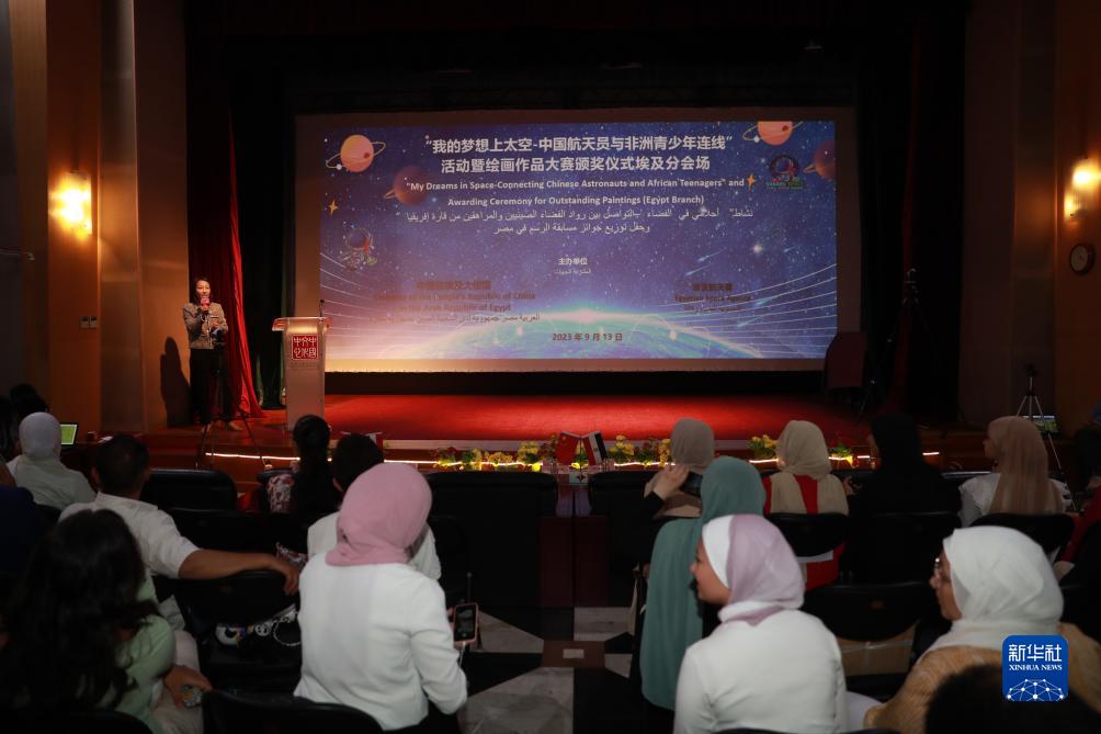 9月13日,在埃及开罗,人们参加“我的梦想上太空-中国航天员与非洲青少年连线”活动暨绘画作品大赛颁奖仪式。新华社记者 隋先凯 摄