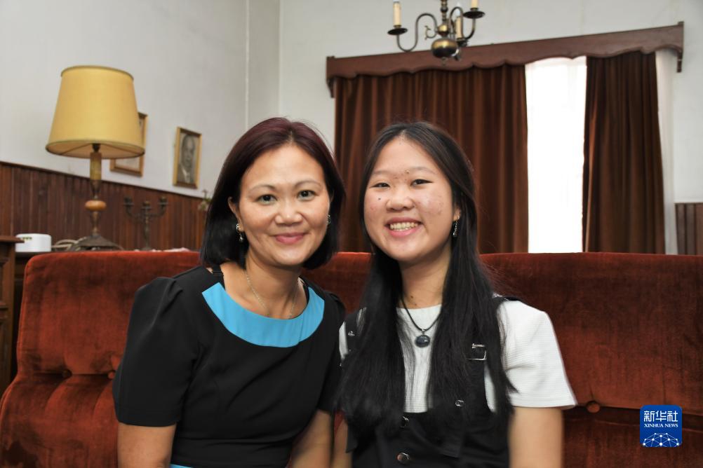 6月8日,毛里求斯17岁高中生莉萨(右)和家人在毛里求斯家中接受新华社记者采访。新华社发(阿贾伊·达比摄)