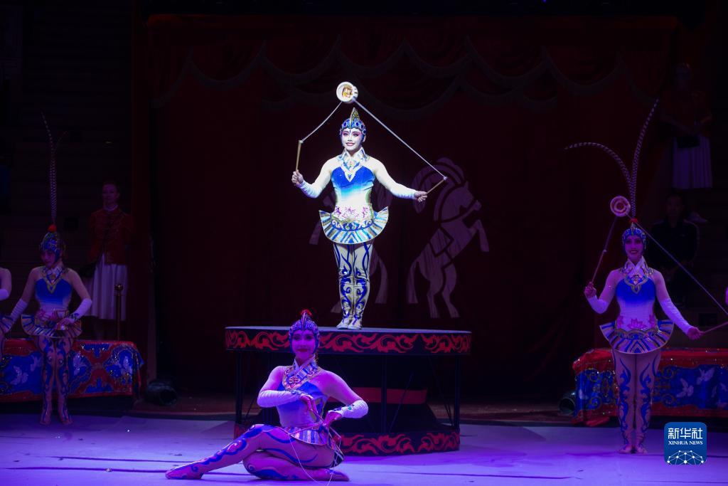 9月14日,中国演员在俄罗斯圣彼得堡举行的第二届“无国界”国际马戏艺术节上表演抖空竹节目。
