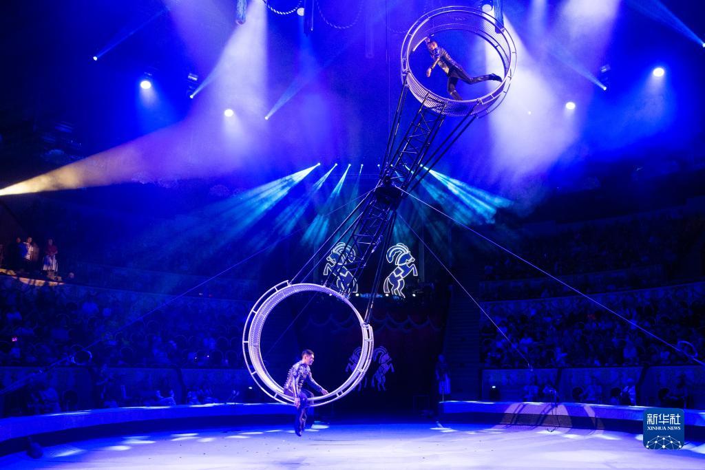 9月14日,吉尔吉斯斯坦演员在俄罗斯圣彼得堡举行的第二届“无国界”国际马戏艺术节上表演节目。