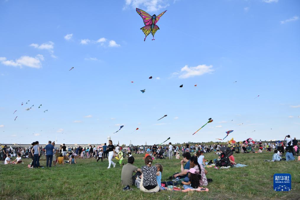 当日,德国柏林举行2023年巨型风筝节。现场放飞了章鱼、青蛙、金鱼、小熊等造型的巨型风筝,还吸引众多市民前来放风筝。