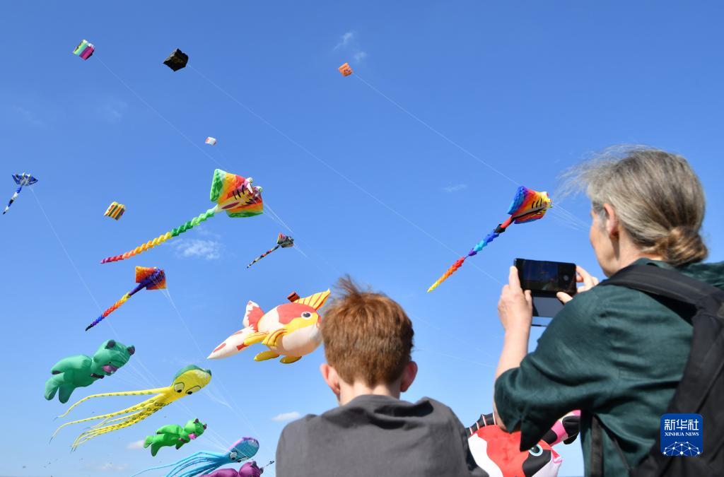 当日,德国柏林举行2023年巨型风筝节。现场放飞了章鱼、青蛙、金鱼、小熊等造型的巨型风筝,还吸引众多市民前来放风筝。