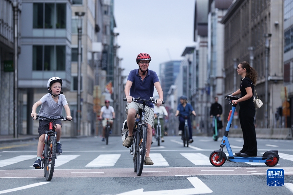 9月17日,人们在比利时布鲁塞尔的“无车日”出行。