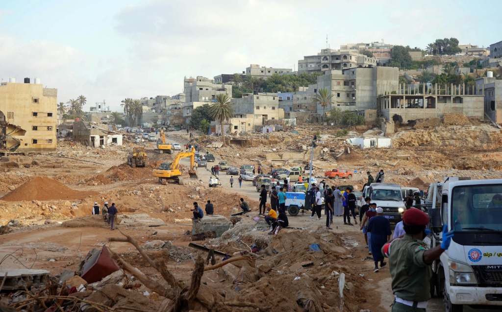 9月16日,救援人员在利比亚德尔纳的受灾地区工作。新华社发(哈姆扎·图尔基亚摄)