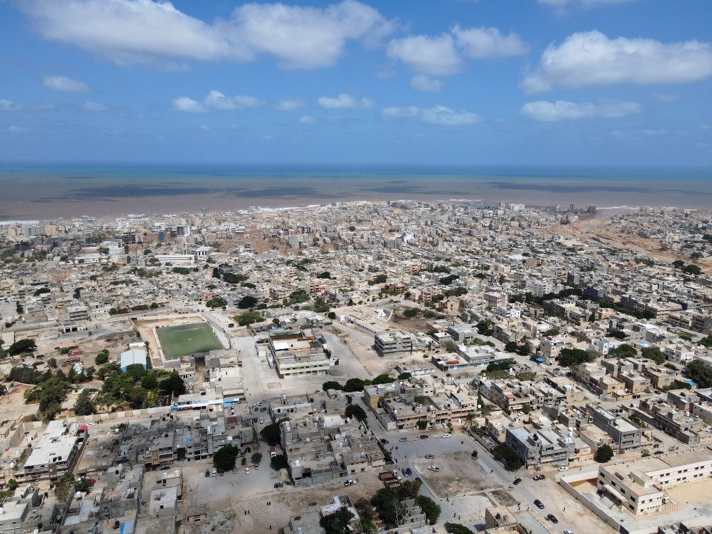 这张9月16日的航拍照片显示的是利比亚德尔纳受灾地区的景象。新华社发(哈姆扎·图尔基亚摄)