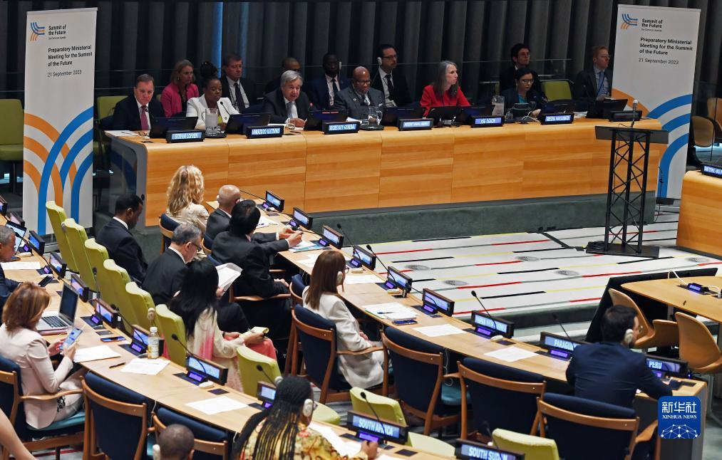 9月21日,在位于纽约的联合国总部,联合国秘书长古特雷斯在未来峰会部长级筹备会上讲话。