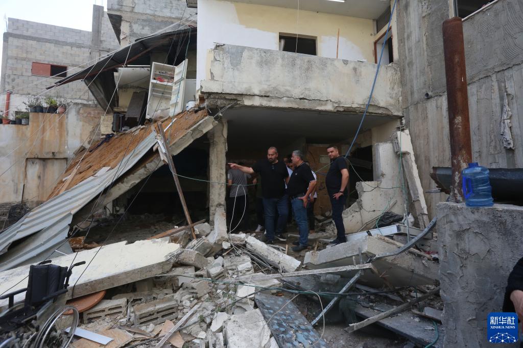 9月24日,在约旦河西岸城市图勒凯尔姆,巴勒斯坦人在冲突后查看受损建筑。