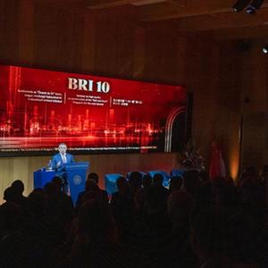 9月25日,匈牙利国家银行(央行)行长毛托尔奇·捷尔吉在布达佩斯举行的高质量共建“一带一路”研讨会上致辞。