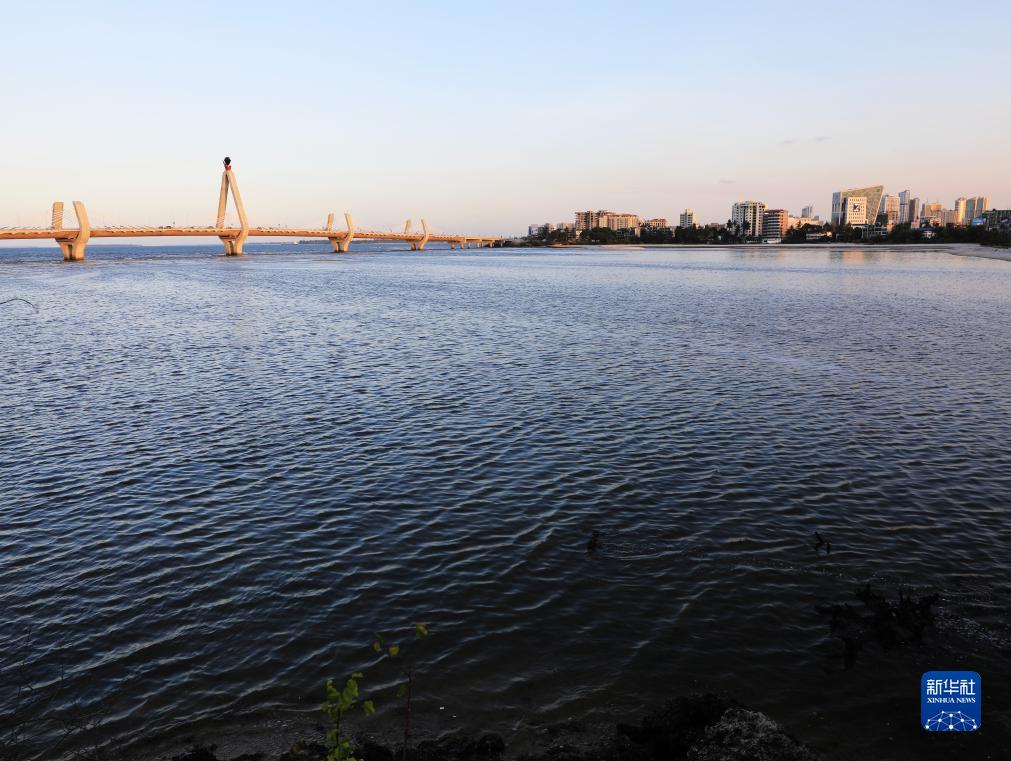 这是9月22日在坦桑尼亚达累斯萨拉姆拍摄的坦桑蓝跨海大桥与城市景观。