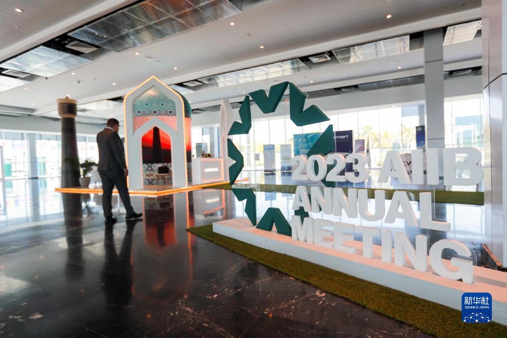 9月26日,在埃及沙姆沙伊赫,参会者走过亚投行第八届理事会年会的展板。