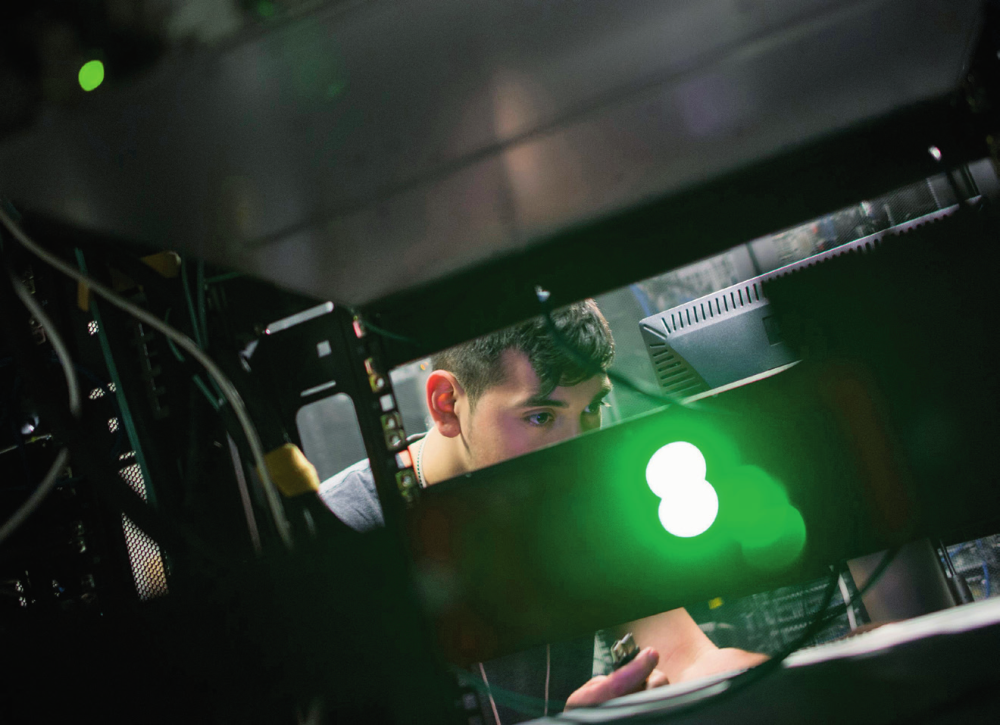 在美国华盛顿,一名工程师将电脑接入网络(资料照片)