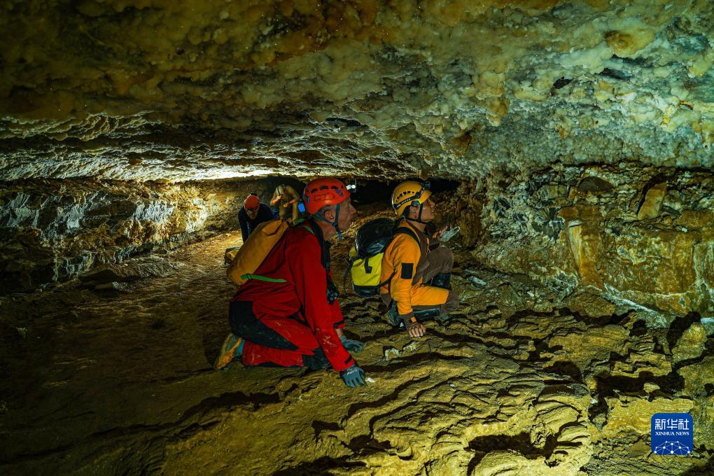 意大利专家和贵州省山地资源研究所科考队员在双河洞一处支洞中进行科考(9月22日摄)。