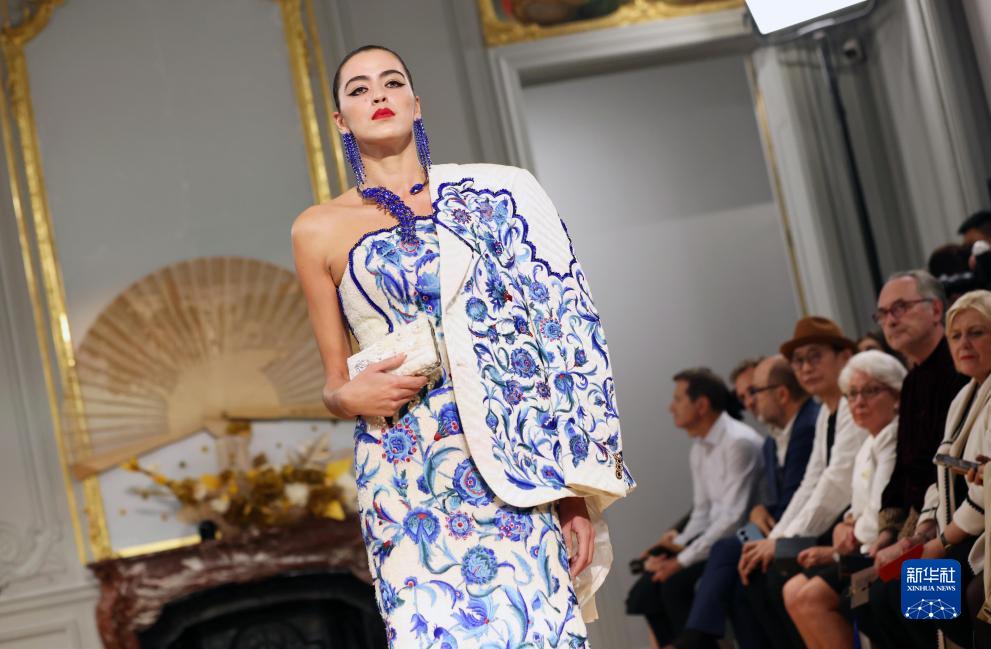 作为2023中法时装周开幕大秀,“恭王府服饰秀”27日晚在巴黎中国文化中心举行,展出服装设计师劳伦斯·许创作的35套恭王府系列高定服装。