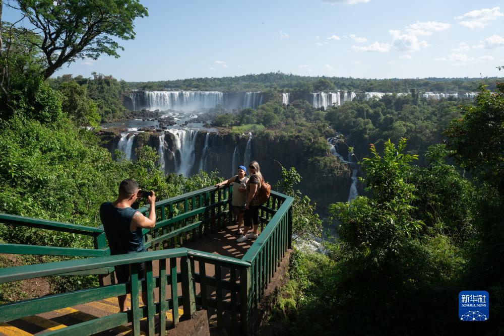 10月1日,游客在巴西巴拉那州伊瓜苏大瀑布景区内参观。