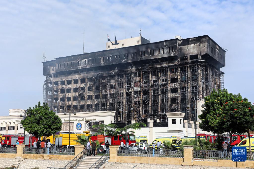 这是10月2日在埃及伊斯梅利亚拍摄的发生火灾的警察局大楼。