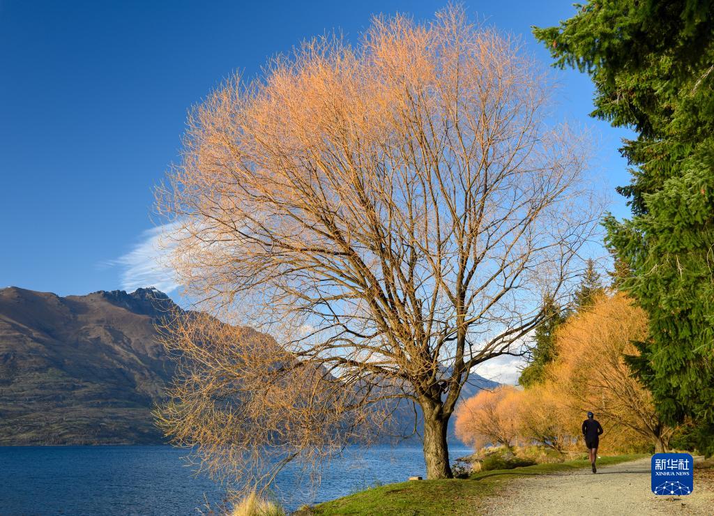 9月28日,一名男子在新西兰南岛昆斯敦的湖边跑步。 新华社记者 郭磊 摄