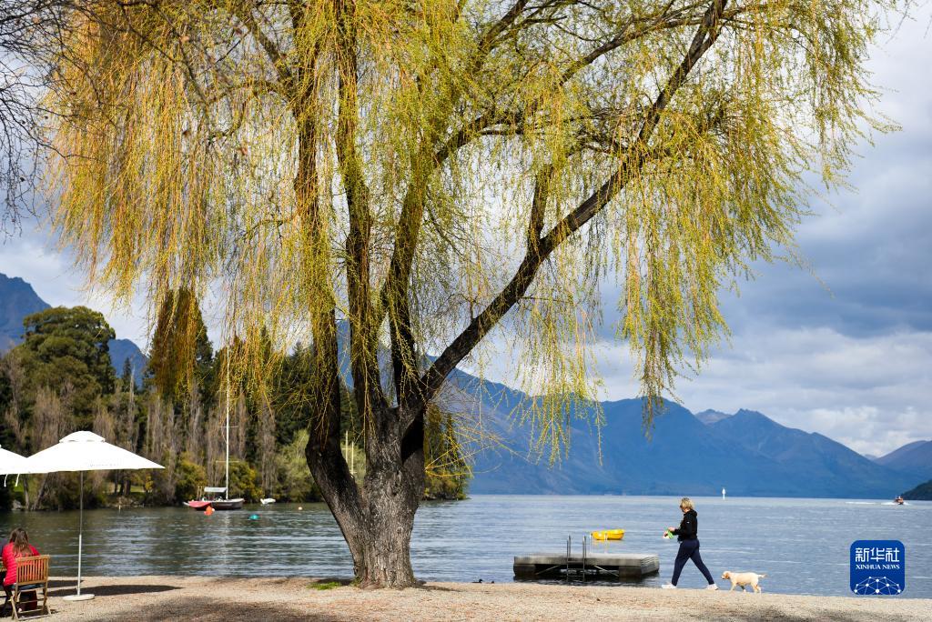 9月28日,一名女子在新西兰南岛昆斯敦的湖边散步。 新华社记者 郭磊 摄