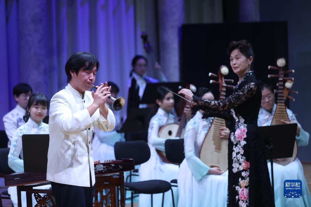 南京大学民族乐团2日在位于斯洛文尼亚首都卢布尔雅那市中心的卢布尔雅那大学音乐学院举办中国民族音乐会。