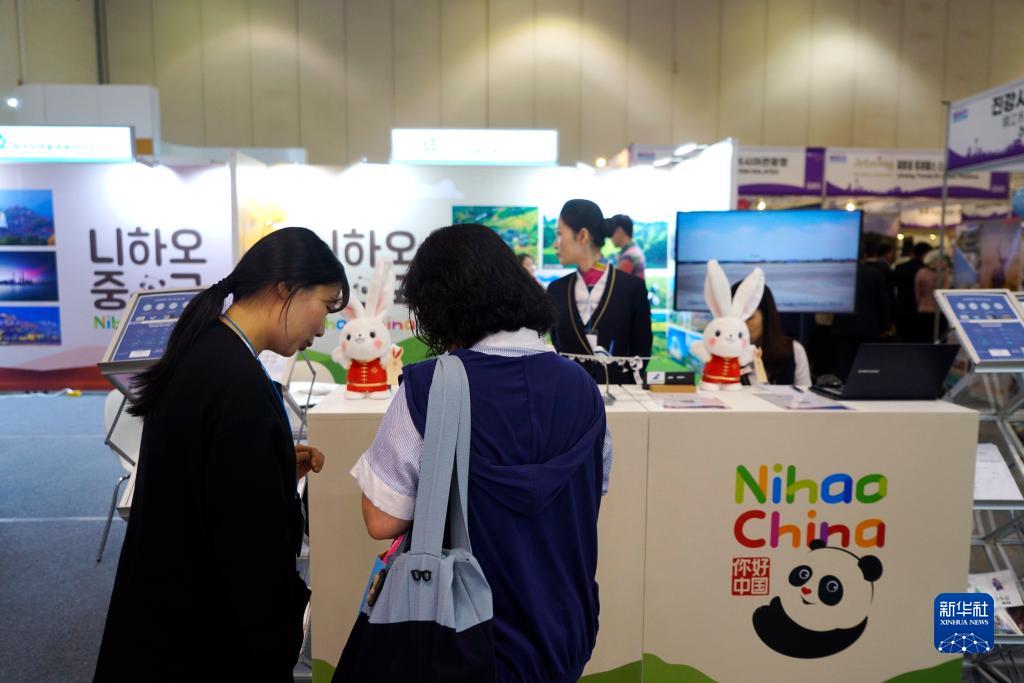 10月5日,人们在韩国釜山国际旅游展中国展位参观。新华社记者 陆睿 摄