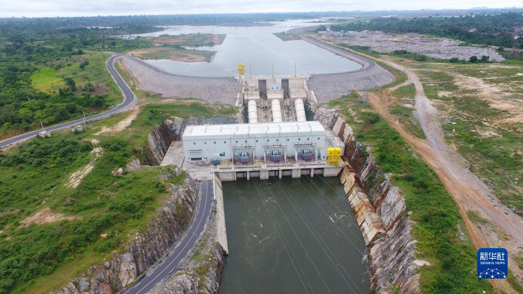 这是2023年8月15日拍摄的科特迪瓦苏布雷水电站厂房全貌。苏布雷水电站位于萨桑德拉河上纳瓦瀑布附近,由中国电建下属的中国水利水电第五工程局有限公司承建,总装机容量为275兆瓦,是科国家能源平衡战略核心项目。