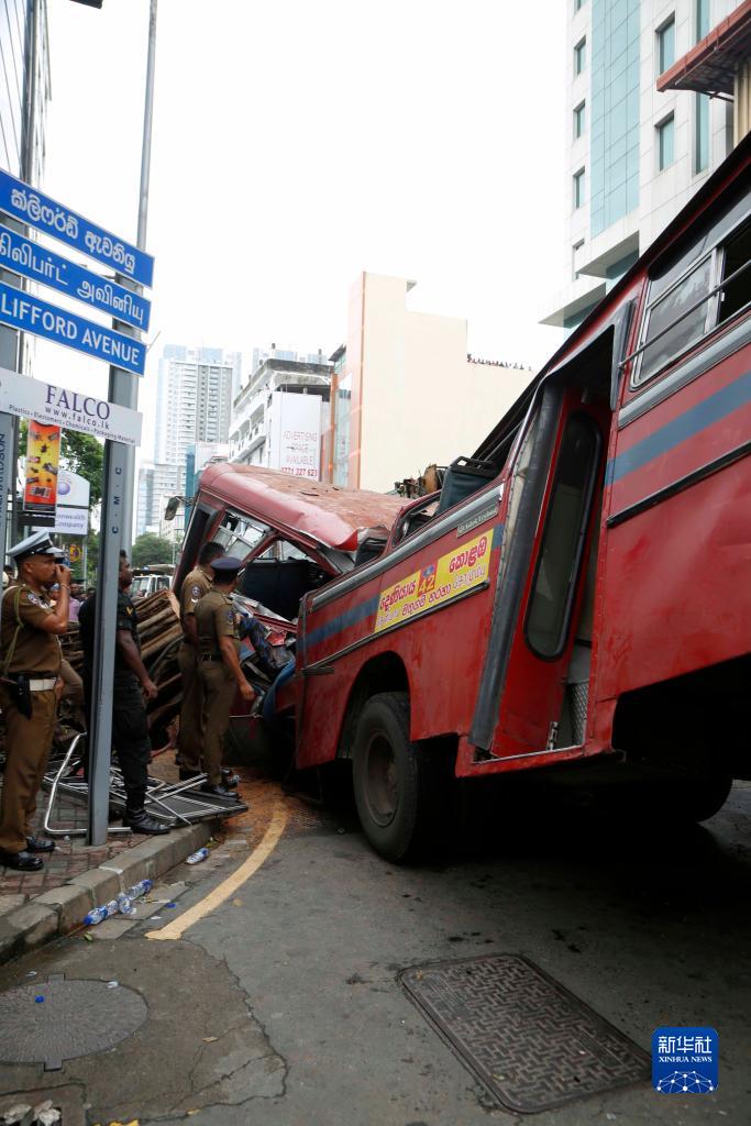 这是10月6日在斯里兰卡科伦坡拍摄的公交车被砸事故现场。新华社发(加扬·萨米拉摄)