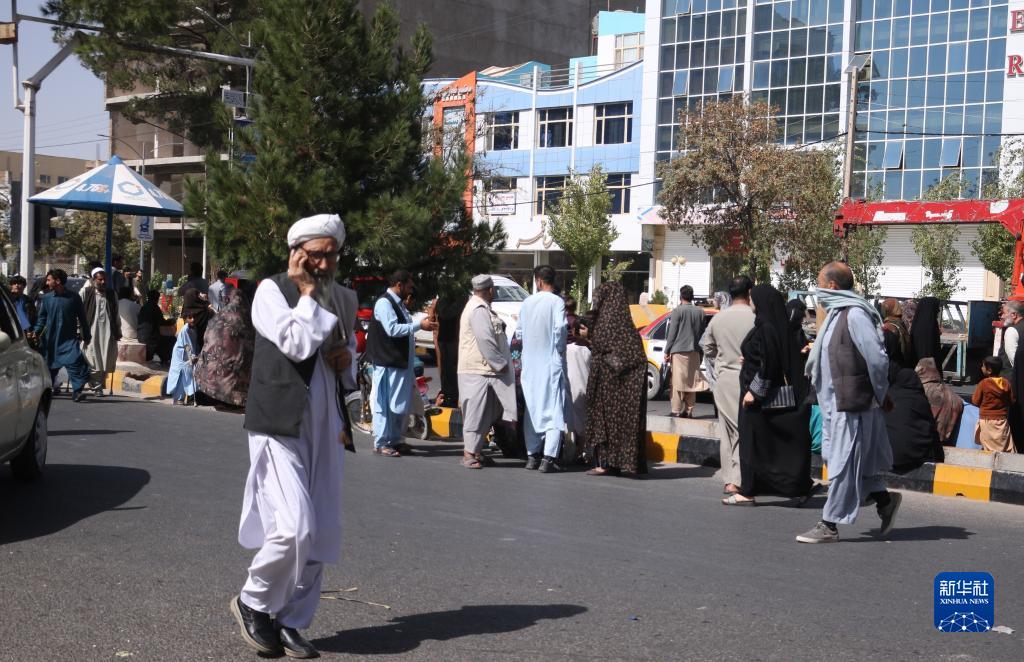 10月7日,阿富汗西部赫拉特省赫拉特市居民在街道上躲避地震。新华社发(马沙勒摄)