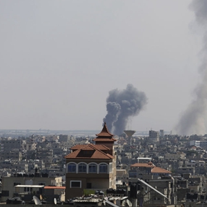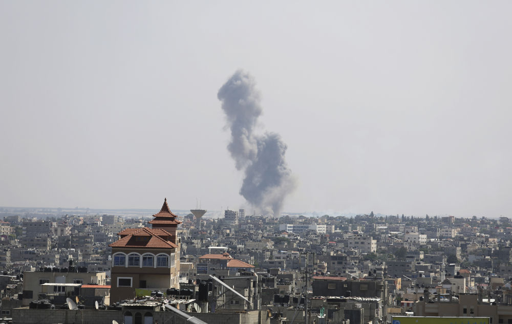 ↑这是10月7日在加沙地带南部城市拉法拍摄的以色列军队空袭造成的浓烟。新华社发(哈立德·奥马尔摄)