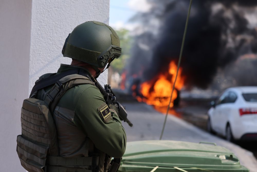 ↑10月7日,在以色列南部城市阿什克隆,以色列警察展开行动。新华社发(伊兰·阿萨亚格摄/基尼图片社)