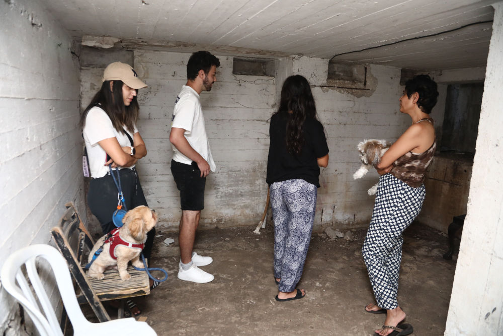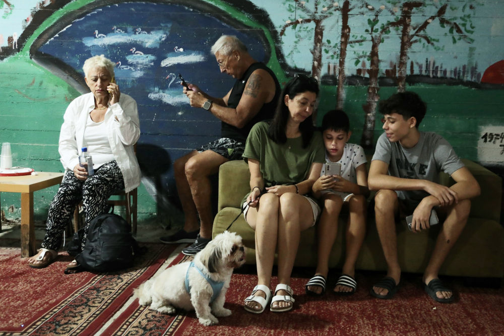 ↑10月7日,防空警报响起后民众在以色列特拉维夫一处建筑内躲避。新华社发(吉德翁·马科维奇摄/基尼图片社)