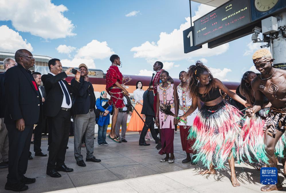 10月6日,多国驻肯使节在肯尼亚内罗毕的蒙内铁路内罗毕站观看文艺演出。
