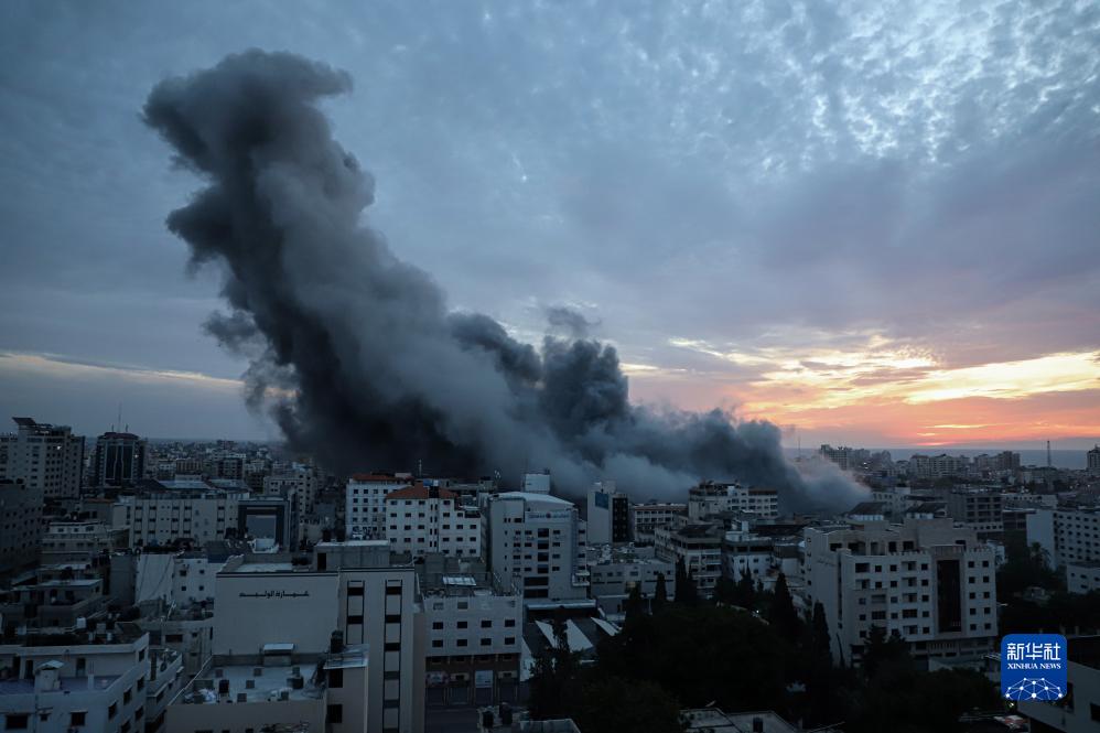 这是10月7日在加沙城拍摄的以色列军队空袭地面建筑造成的浓烟。