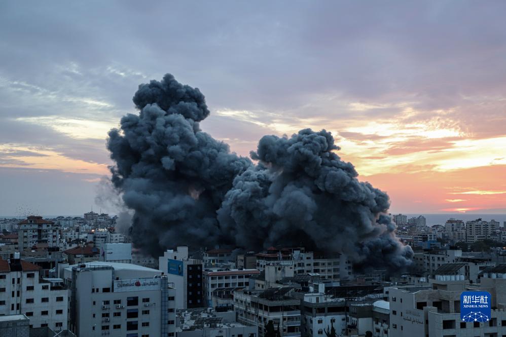 这是10月7日在加沙城拍摄的以色列军队空袭地面建筑造成的浓烟。