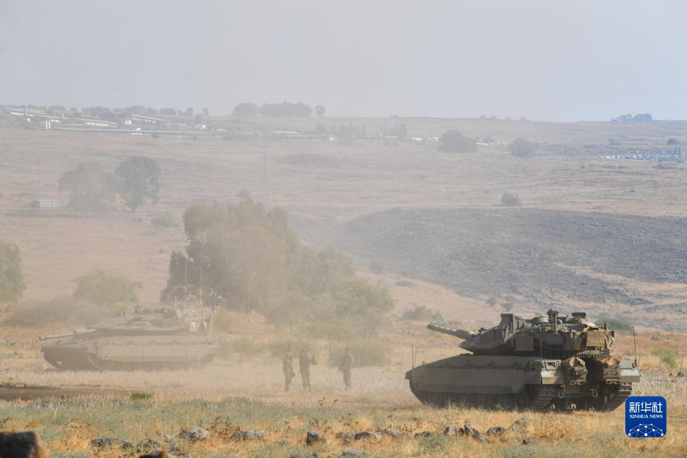 这是10月8日在以色列北部靠近黎巴嫩的边境区域拍摄的以色列坦克。