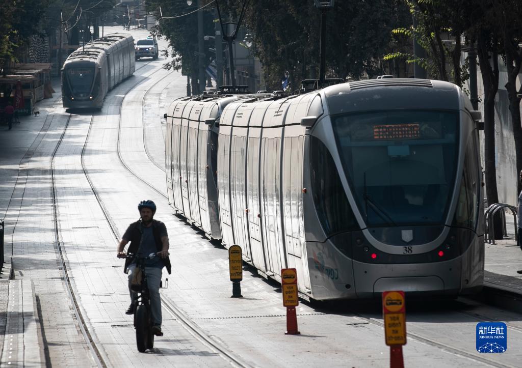 10月8日,轻轨列车行驶在耶路撒冷街头。