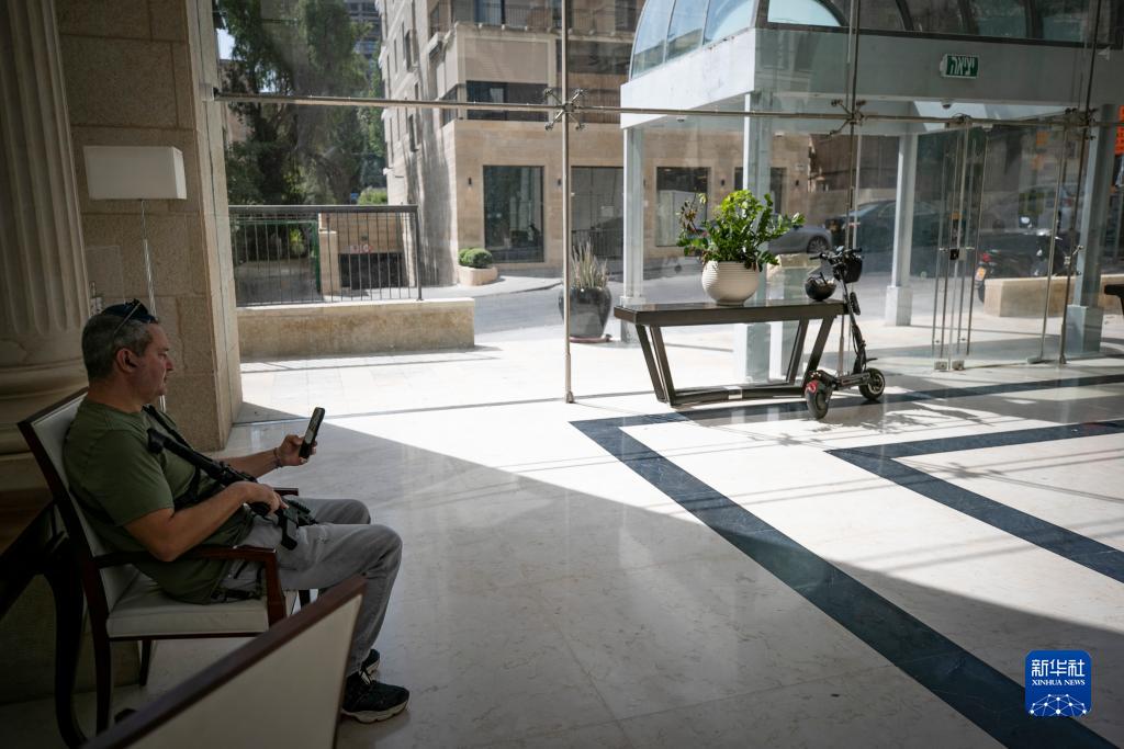 10月8日,在耶路撒冷,一名男子武装守卫一栋居民住宅。