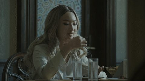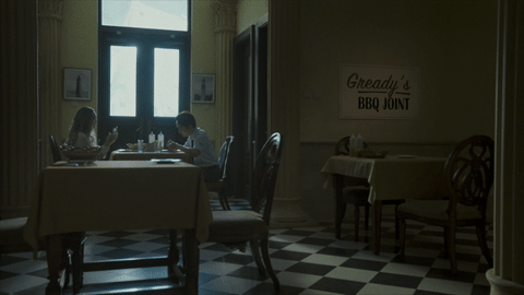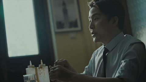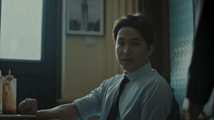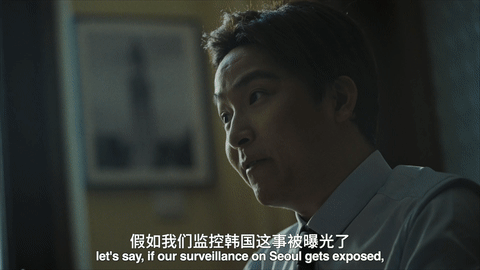 微电影一开始,美政客“上木”和女助理“那厮媞”来到了“哥来盯”烤肉店。“那厮媞”拍起美食根本停不下来,还把摄像头对向正在吃烤猪排的“上木”,以至于他露出不耐烦的表情,示意她为了两人的聊天安全赶快停止拍摄。一场有关监控的讨论也由此展开。