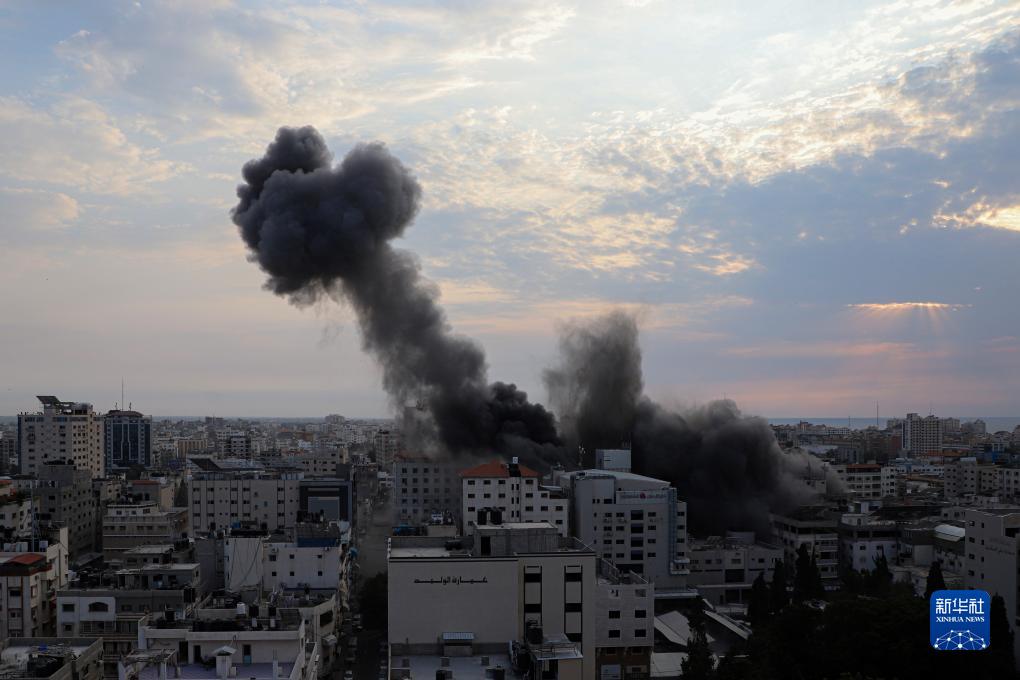 这是10月8日在加沙城拍摄的以色列空袭后的浓烟。