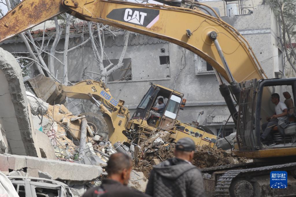 10月8日,在加沙地带南部城市汗尤尼斯,人们在以色列空袭后的建筑废墟中搜寻幸存者。