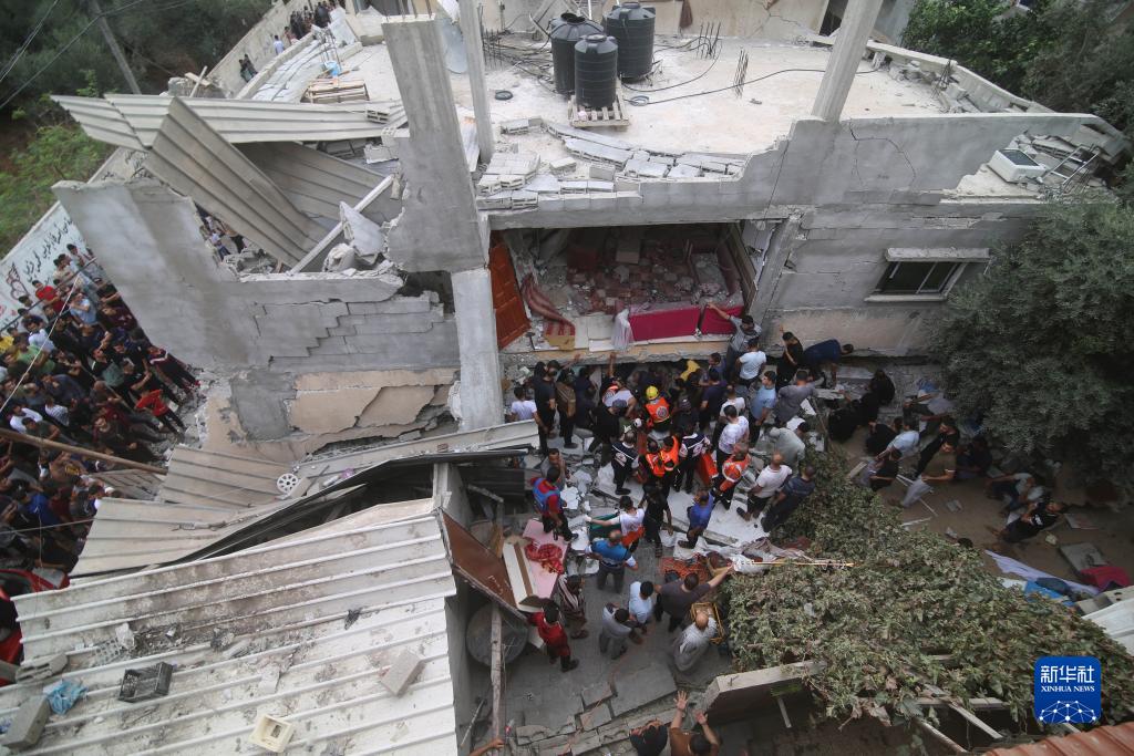 10月9日,在加沙地带南部城市拉法,人们从以色列空袭后的建筑中抬出一名搜寻到的受害者。