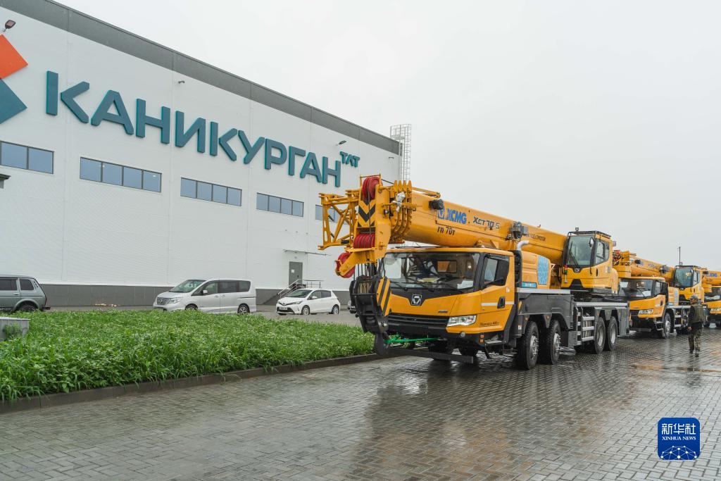 这是7月24日拍摄的俄罗斯卡尼库尔干海关物流码头正在排队等待清关的车队。卡尼库尔干海关物流码头位于中俄黑河-布拉戈维申斯克公路桥俄方一侧,是靠近大桥的最大物流综合体,部分项目仍在建设中。