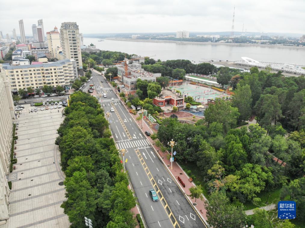 这是8月10日拍摄的中国黑河市城市景观(无人机照片)。