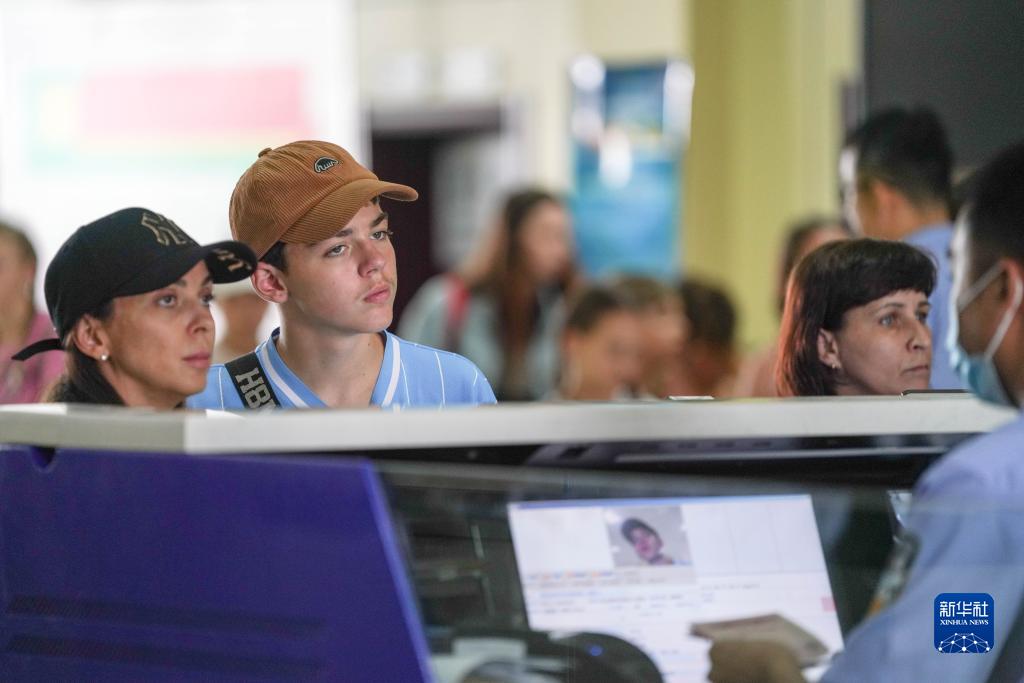 这是8月11日拍摄的入境俄罗斯公民在中国黑河旅检口岸办理通关手续。