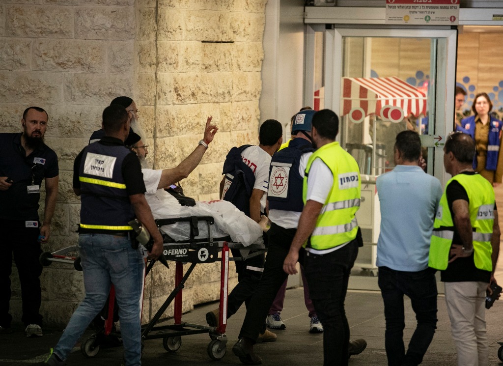 10月9日,在以色列南部城市阿什凯隆,伤员被送至一家医院。新华社记者陈君清摄